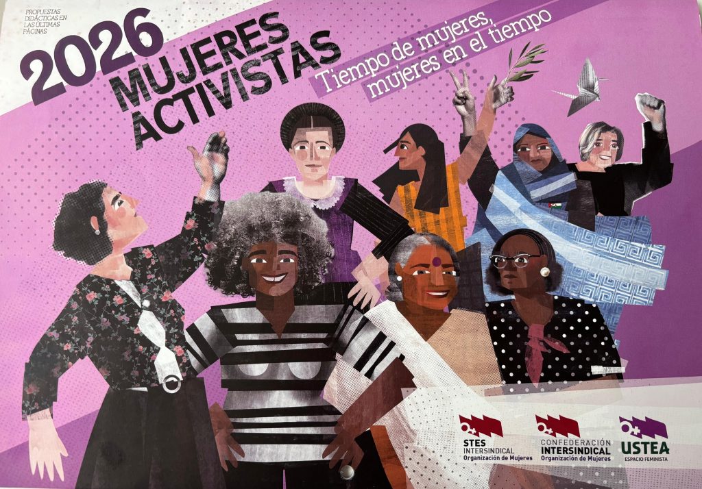 Desde el Espacio Feminista de USTEA que pertenece a la Organización de Mujeres de la Confederación Intersindical presenta la edición para el año 2026 de su Calendario didáctico y coeducativo Tiempo de Mujeres, Mujeres en el Tiempo 2026, este año está dedicado a Mujeres activistas.